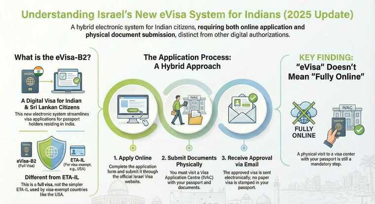 Important Distinction: The eVisa-B2 for Indians is different from the ETA-IL (Electronic Travel Authorization) system that launched on January 1, 2025, for visa-exempt countries like the United States, Canada, and European nations. Indians still require a full visa, not just a travel authorization.